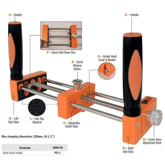 Uchwyt frezarski CMT do małych elementów jest niezbędnym wyposażeniem każdej stolarni. Uchwyt pozwala w efektywny i bezpieczny sposób frezować małe elementy na frezarkach dolnowrzecionowych oraz stołach frezarskich. Uchwyt posiada dwie rączki dystansujące dłonie operatora od ostrza skrawającego. Antypoślizgowe wykończenie chwytu stabilizuje materiał podczas obróbki.