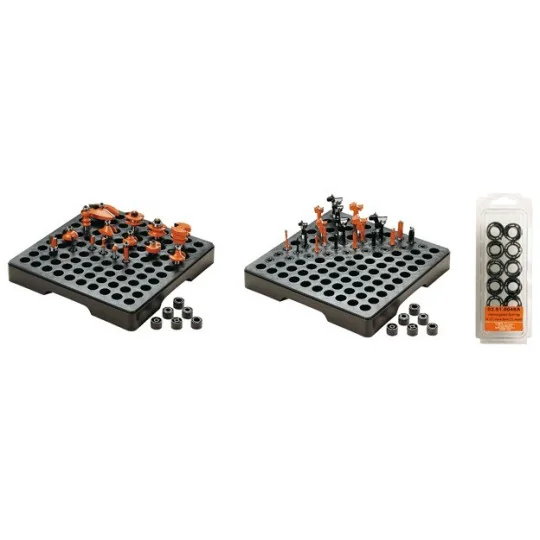 Organizer firmy CMT daje możliwość utrzymania porządku w miejscu pracy z jednoczesnym posiadaniem pod ręką wszystkich najczęściej używanych frezów. Odpowiednie tulejki zapewiają stabilne i pewne trzymanie nawet do 100 frezów.