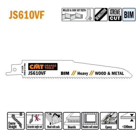 JS610VF-5 Piła szablasta L 150 I 130 H 22 K 1,60 TS 3,2-5 5 szt. CMT