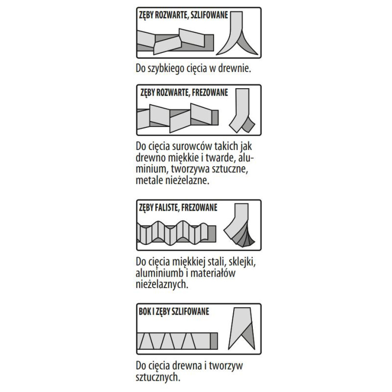 Bardzo szybkie cięcie. Miękkie drewno (5-60 mm), płyty wiórowe, stolarskie, pilśniowe.