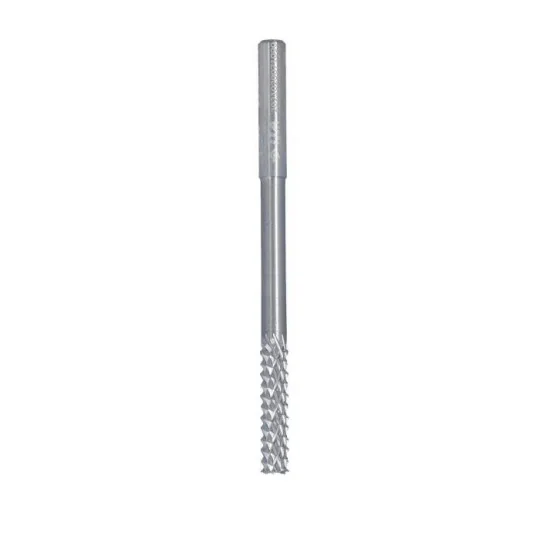 Frez pilnikowy przeznaczony do obróbki materiałów takich jak GFK (włókno szklane), CFK (włókno węglowe) i HPL (laminat wysokociśnieniowy). Frez ma średnicę 4 mm, długość roboczą 18 mm, całkowitą długość 60 mm, i trzon o średnicy 4 mm. Jest to narzędzie przeznaczone do precyzyjnej obróbki materiałów kompozytowych, zapewniające wysoką jakość wykończenia i skuteczność w usuwaniu materiału.