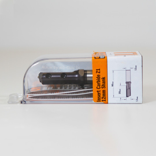 Frez prosty Z=1 na wymienne płytki posiadające wyżłobienia, które zapewniają bezpieczne i stabilne ułożenie ostrza na korpusie. Możliwość frezowania i wiercenia w takich materiałach jak MDF, laminowane DTD oraz twarde drewno. Może być stosowany zarówno we frezarkach ręcznych jak i maszynach CNC.