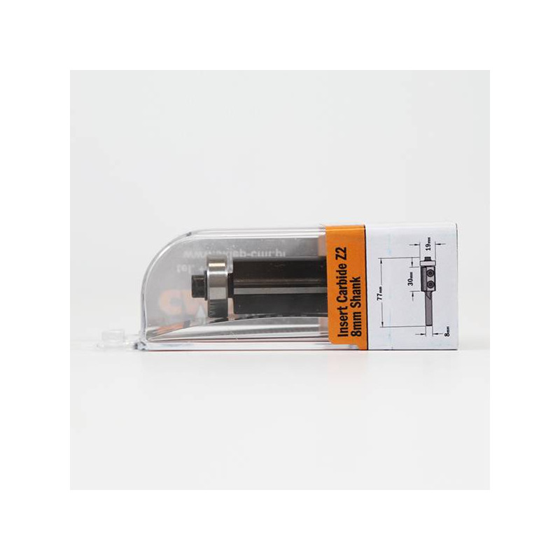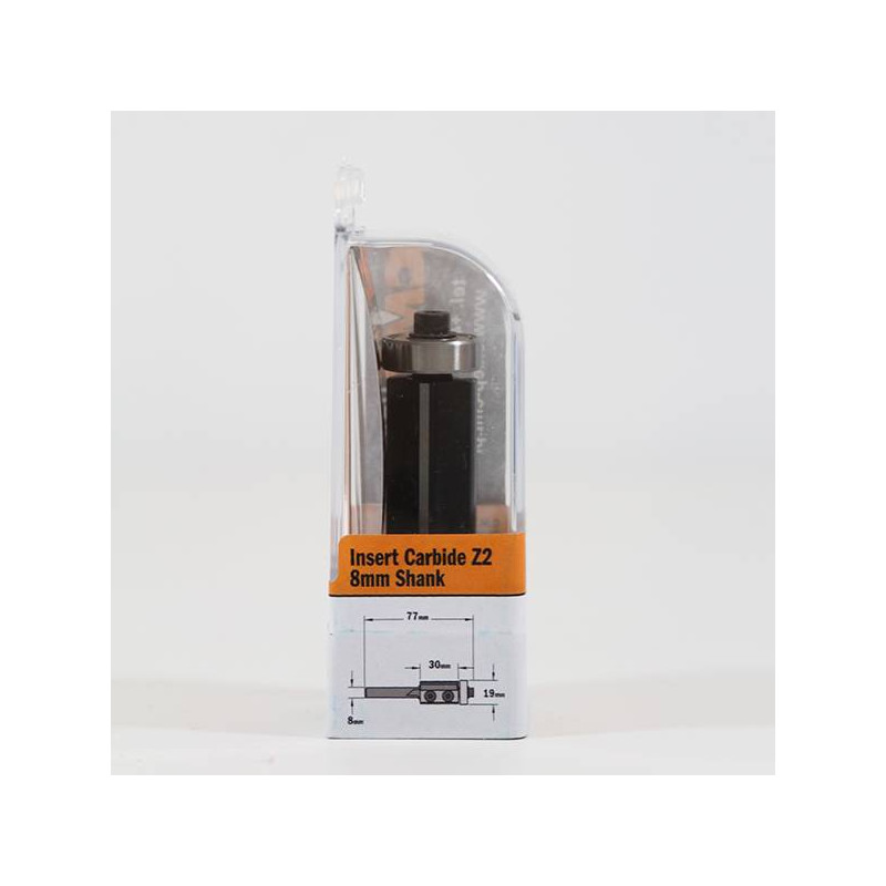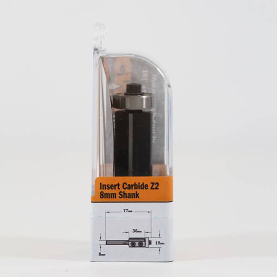 Frez prosty Z=2 na płytki wymienne mocowane za pomocą śrubek typu Torx. Możliwość stosowania dwu lub czterostronnie ostrzonych płytek. Frezy te wyposażone są w łożysko prowadzące.