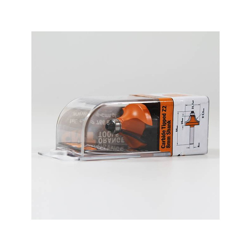 Używając tego typu frezów, oprócz tradycyjnego zaokrąglenia możesz uzyskać sfazowanie krawędzi stanowiące dodatkowy element dekoracyjny. Jest to możliwe dzięki zastosowaniu łożyska prowadzącego o mniejszej średnicy. Aby robić tylko samo zaokrąglenie, wystarczy zmienić łożysko na większe.