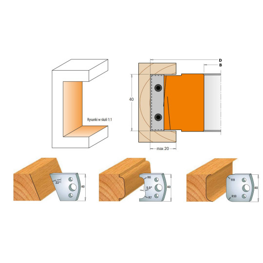 - Zestaw głowic do zaokrąglania i fazowania