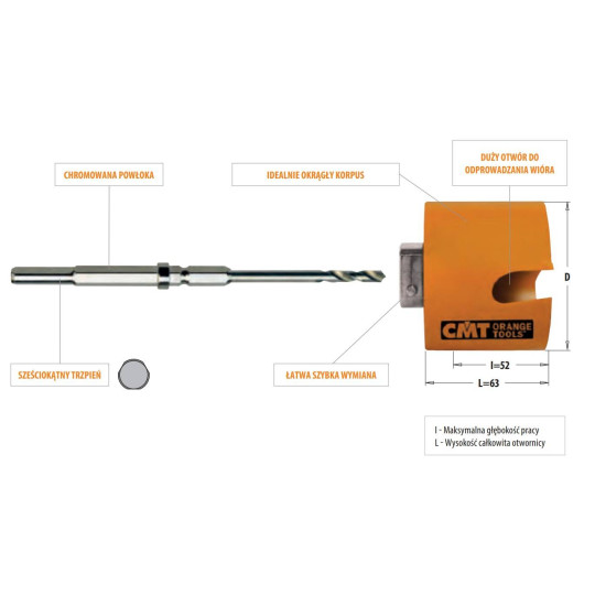 Dodaj opinię o produkcie550-070X Otwornica uniwersalna 70 mm max rpm Drewno,MDF/PCV/Cegła/Terakota CMT