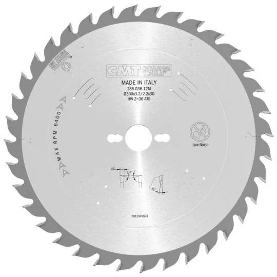 | 285.048.12M | 2,2 mm | 3,2 mm | 48 | 15° | 10° NS (ATB) | COMBI3 | 300 mm | 30 mm | drewno |