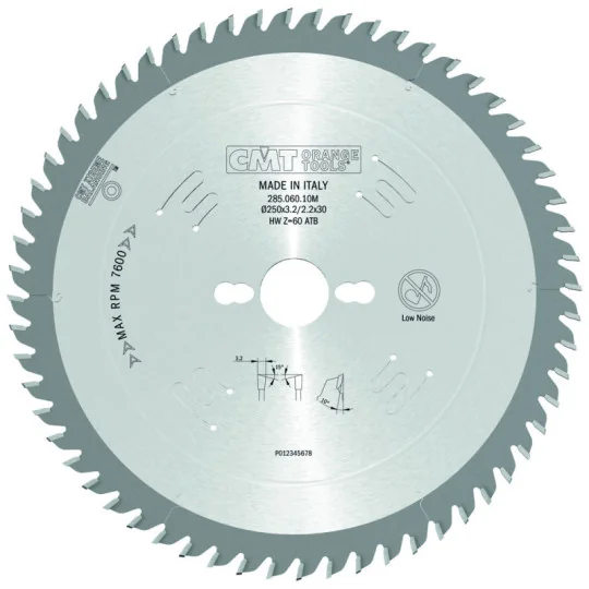 | 285.060.10R | 2,2 mm | 3,2 mm | 60 | 10° | 15° NS (ATB) | - | 250 mm | 35 mm | drewno |