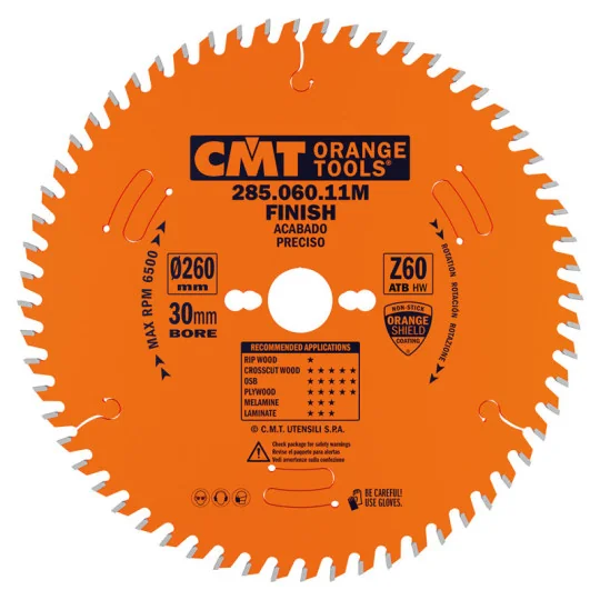 | 285.060.10M | 2,2 mm | 3,2 mm | 60 | 10° | 15° NS (ATB) | COMBI3 | 250 mm | 30 mm | drewno |