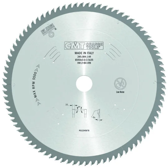 | 285.084.14M | 2,5 mm | 3,5 mm | 84 | 10° | 15° NS (ATB) | COMBI3 | 350 mm | 30 mm | drewno |
