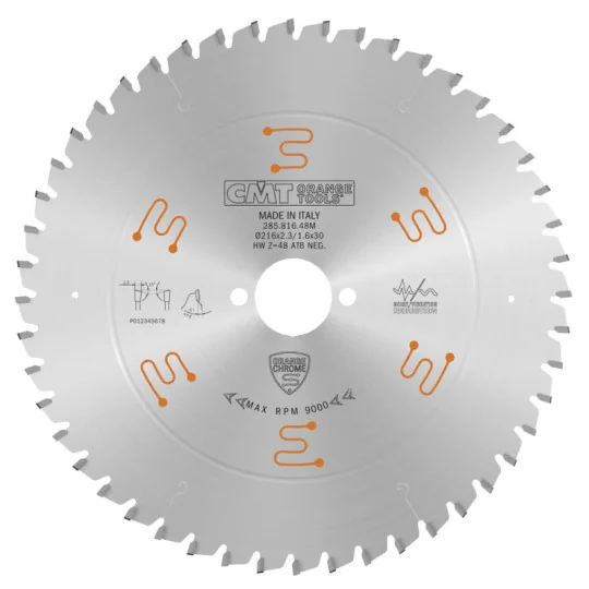 Piła tarcza chromowana wyciszona HM D216 F30 Z48 K2,3/1,6 2/7/42 CHROME CMT 285.816.48M