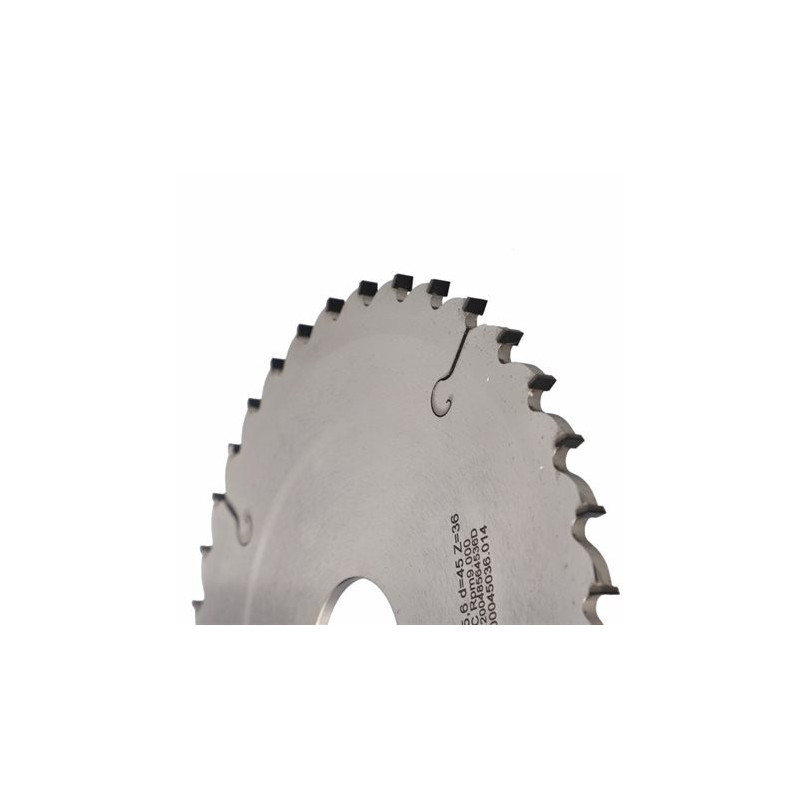 Dzięki laserowo wykonanym nacięciom wyciszającym piła wytwarza mniej hałasu podczas pracy. Nacięcia redukują również drgania piły zwiększając precyzje cięcia.