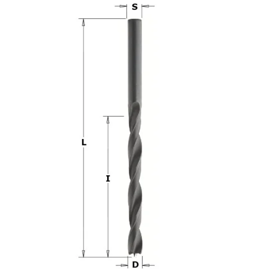 - Trzpień wiertła równy jego średnicy (S=D)