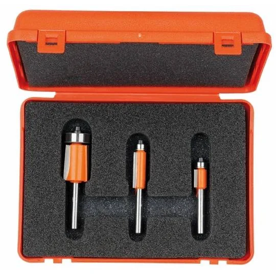 Obcinanie laminatu oraz praca z szablonem staną się jeszcze łatwiejsze dzięki zestawowi 3 frezów prostych o różnych średnicach.